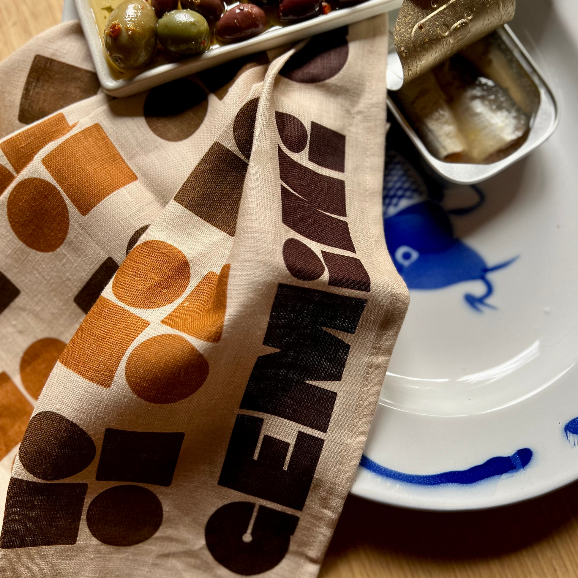 For life's messy and delicious moments! Our signature Gemini colours and retro pattern have been printed onto this 100% linen tea towel. Fling it over your shoulder or hang it on your oven to feel the Gemini spirit in your home.