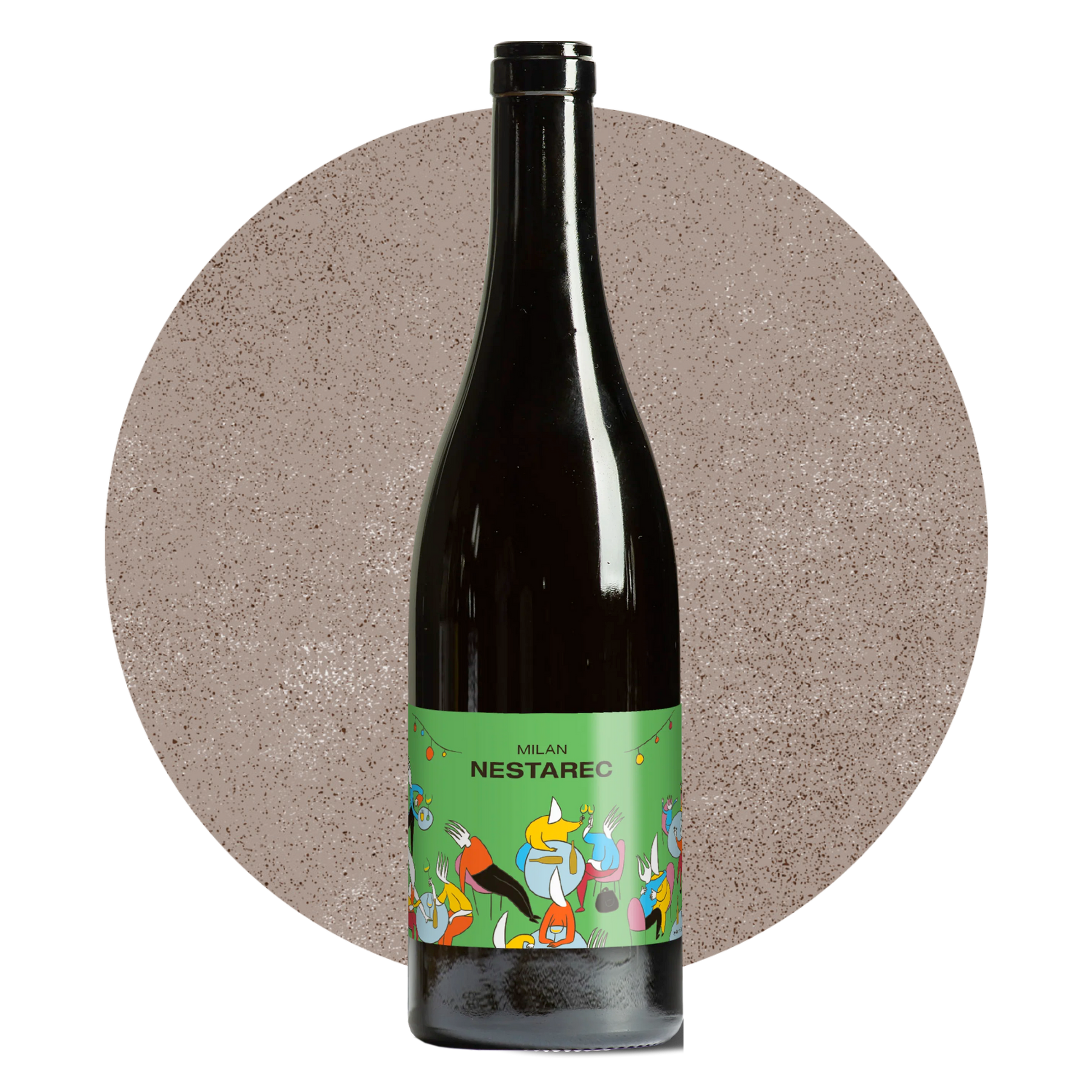 This wine is a vibrant, skin-contact white from Milan Nestarec, crafted to be enjoyed with everyday meals. It offers a delightful blend of Grüner Veltliner, Neuburger, Sauvignon Blanc, Pálava, and Riesling, showcasing notes of citrus, stone fruit, and a touch of herbs. The wine is lightly cloudy with a subtle effervescence, reflecting its natural winemaking process.