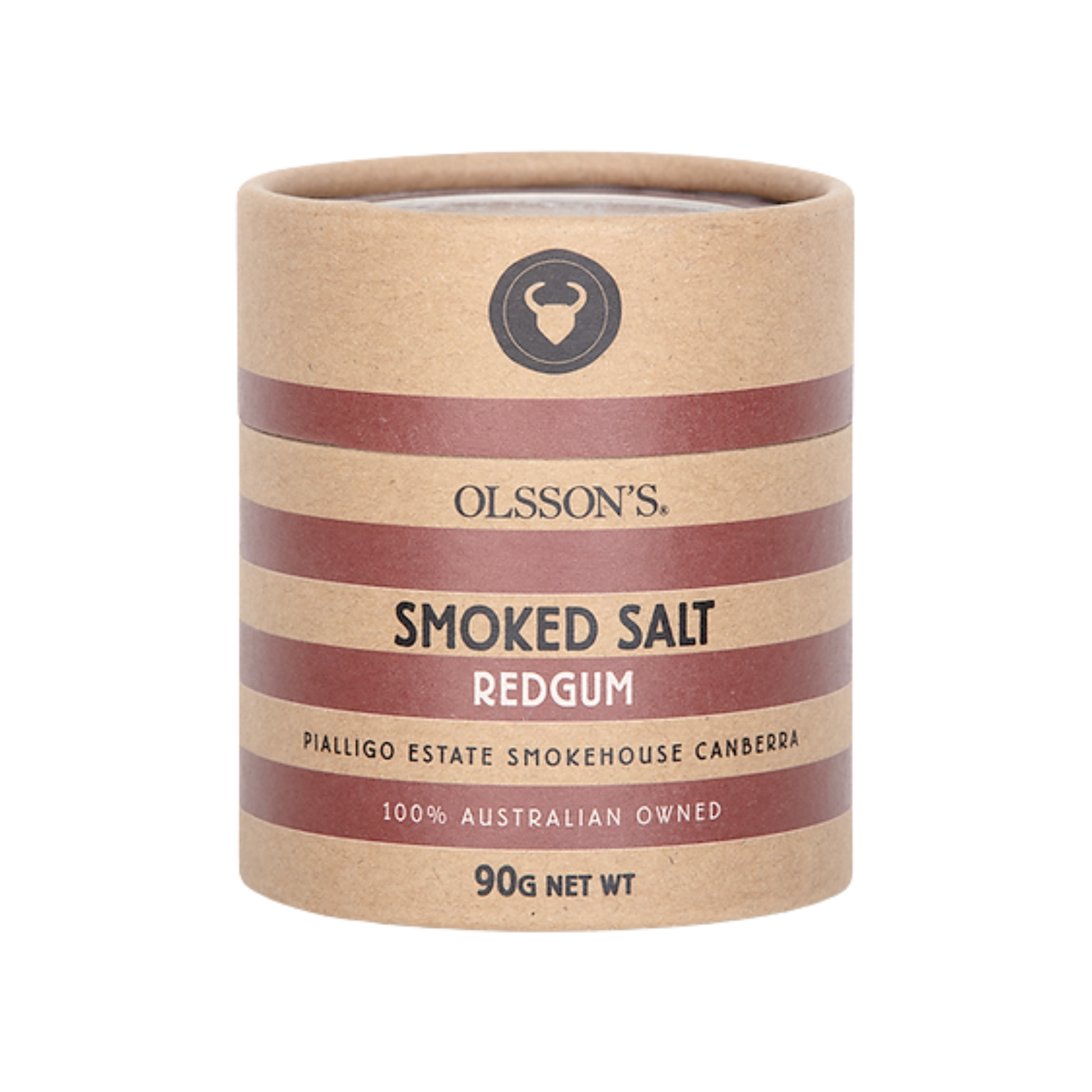 Smoked salt has been a favourite Scandinavian seasoning for centuries, dating back to the time of Vikings who infused sea salt with smoke from native wood fires. The Olsson family has continued this proud Nordic tradition by smoking their Australian sea salt flakes, from South Australia’s Eyre Peninsula, over native river red gum (eucalyptus camaldulensis) for 72 hours in the traditional northern European style. The smoking results in a unique salt enhanced with the aromatic and complex characteristics of the Australian red gum wood.