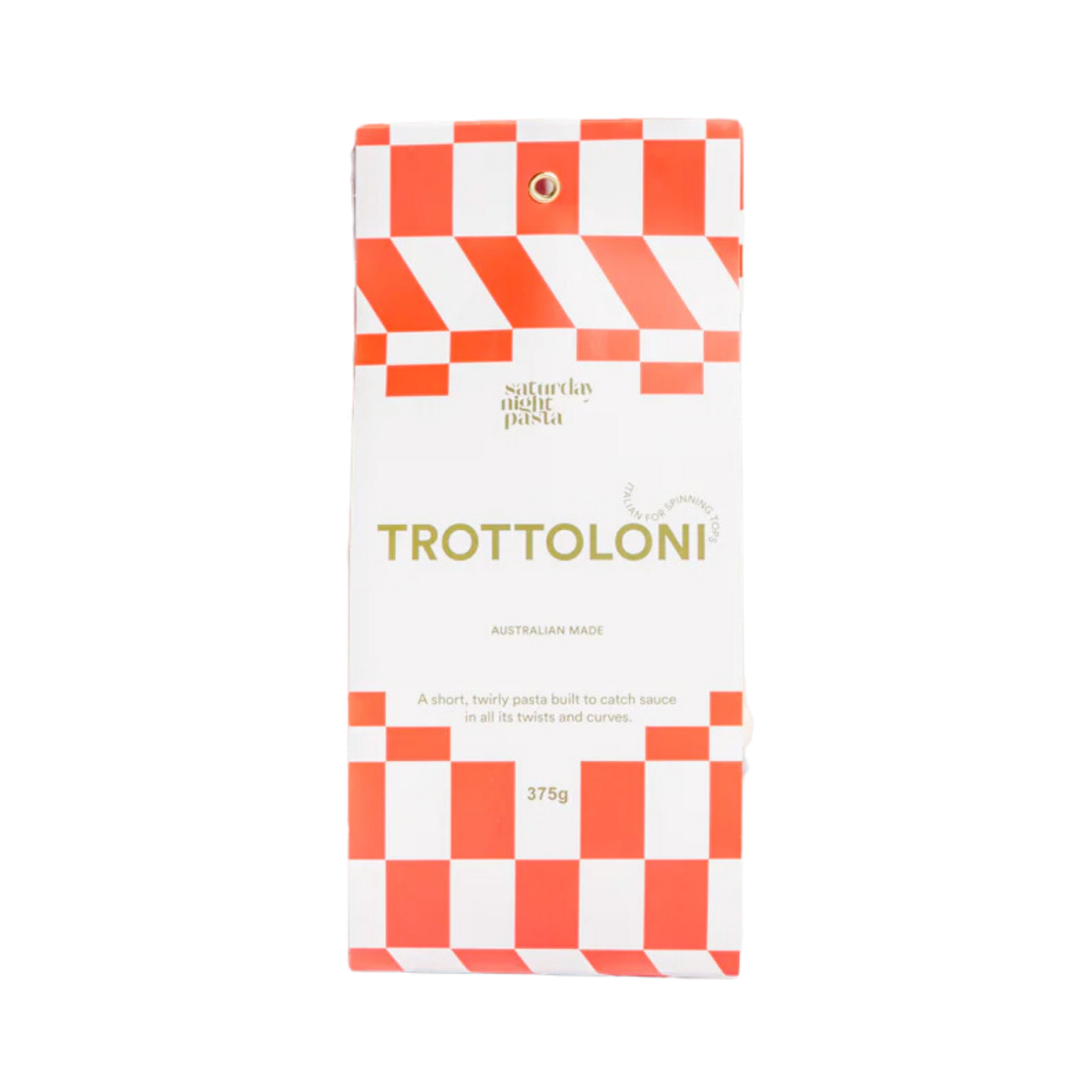 In Italian, Trottoloni translates to “spinning tops”. This is a short, twirly pasta built to catch sauce in all its twists and curves.